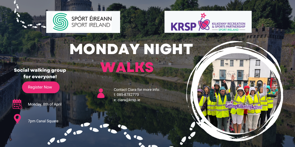 Monday Night Walks is a 7 week walking programme taking place in Kilkenny City! It will run from the 8th of April till the 27th of May (excluding the May 6th Bank Holiday).