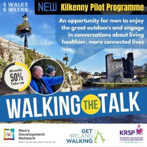 Walking the Talk is a programme run in partnership with The Men’s Development Network and Get Ireland Walking. It is an all men’s walking programme which gives men an opportunity to enjoy the great outdoors and engage in conversations about living healthier more connected lives.