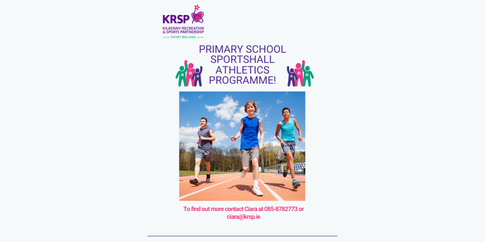Kilkenny Recreation & Sports Partnership are delighted to run our School Hall Athletics Programme! This programme is available to all classes and abilities which focuses on childrens fundamental movements including running, jumping, co-ordination and throwing. The programme length is 6 weeks and includes: